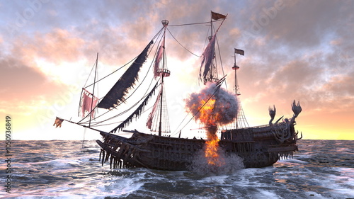 © tsuneomp, Obraz premium 海賊船 3DCGレンダリング
