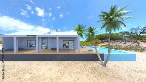 © tsuneomp, Obraz premium プール付き住宅 3DCGレンダリング