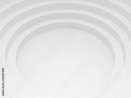 Obraz premium 白い同心円状の階段背景 斜め視点 3DCG