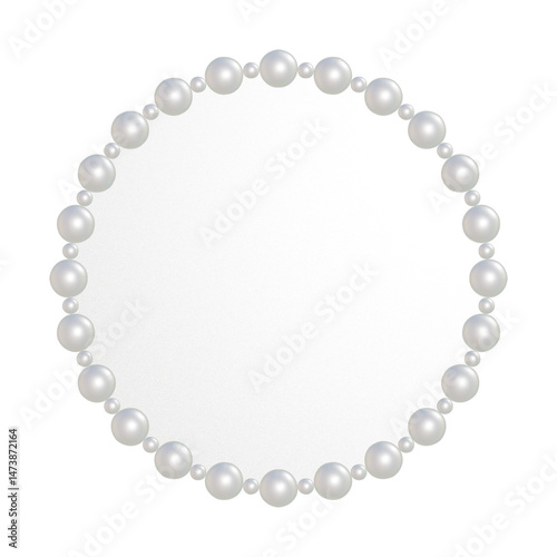 © ryunosuke, Obraz premium 大小の白いパールが並ぶぷっくりした丸いフレーム 透過されたプレートの3DCGイラスト