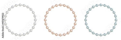© ryunosuke, Obraz premium 大小のパールが並ぶぷっくりした丸いフレーム 透過されたネックレスの3DCGイラストセット