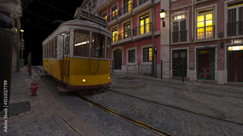 Naklejka premium 路面電車が通る街 3DCGレンダリング