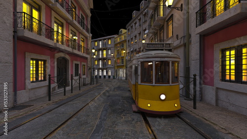 Naklejka premium 路面電車が通る街 3DCGレンダリング