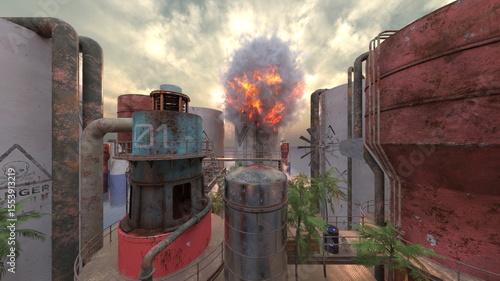 © tsuneomp, Naklejka premium 攻撃される未来都市の風景 3DCGレンダリング