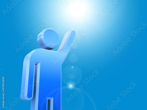 Obraz premium 太陽の光に手を伸ばす3DCGの人型アイコン