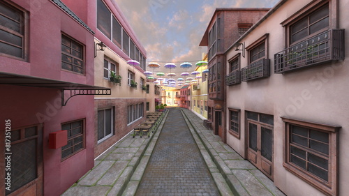 Obraz premium 石畳のある街かど 3DCGレンダリング