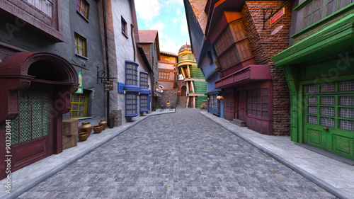 Obraz premium 石畳のある街かど 3DCGレンダリング