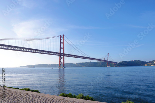 Naklejka premium 25 de Abril Bridge in Lisbon – Scenic View of the Tagus Rive