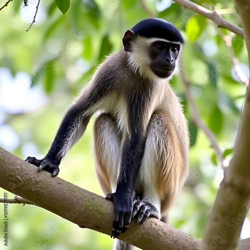 © Rebekah, Fototapeta premium De Brazza's Monkey sitting on a tree. Its scientific name is Cercopithecus neglectus.