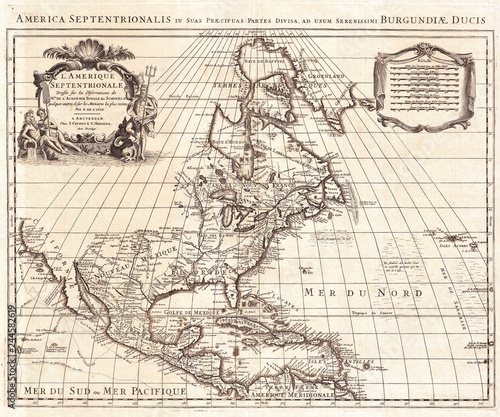 © PicturePast, Naklejka premium 1708, De L'Isle Map of North America, Covens and Mortier ed.