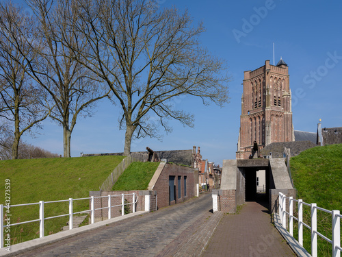 © HollandPhotostock.nl, Fototapeta premium De Martinuskerk is een middeleeuwse kruiskerk in de vestingstad Woudrichem.