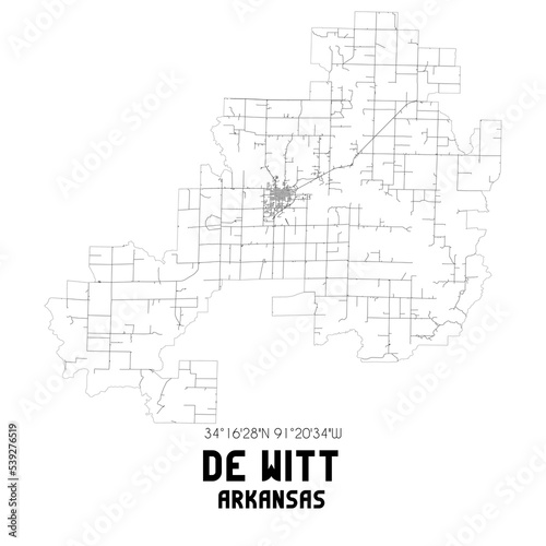 © Rezona, Naklejka premium De Witt Arkansas. US street map with black and white lines.