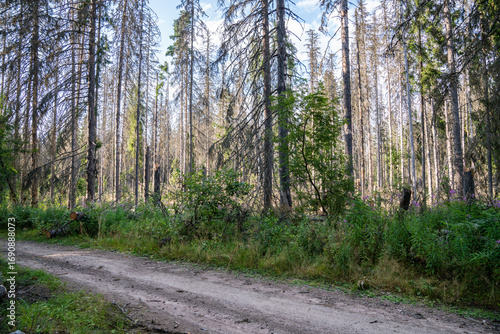Fototapeta premium Dead and dying conifer trees affected by aggressive typographer beetle attack...