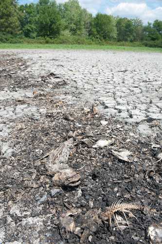 © Tony Campbell, Obraz premium Dead fish on dry wetland