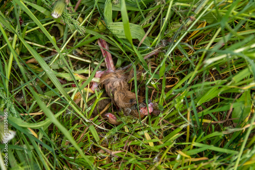 Obraz premium dead mowed fawn , baby deer , in the grass