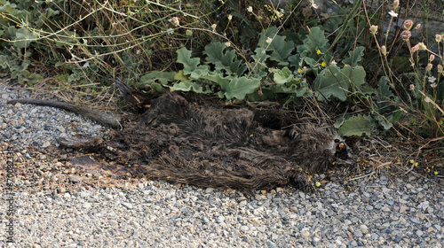 Obraz premium Dead nutria lying on a road