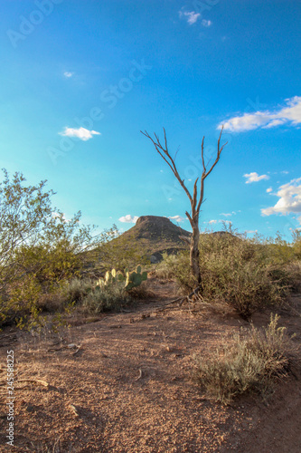 © DCA88, Fototapeta premium Dead tree and maountain at Brown's Ranch hiking trail in Scottsdale Arizona