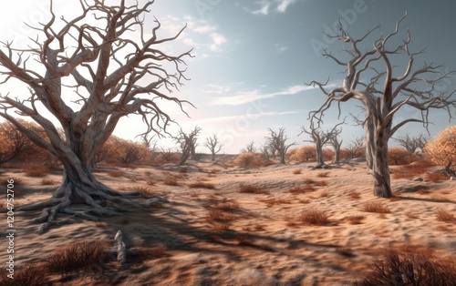 © KHAIDIR, Fototapeta premium Dead Trees in a Desert Landscape