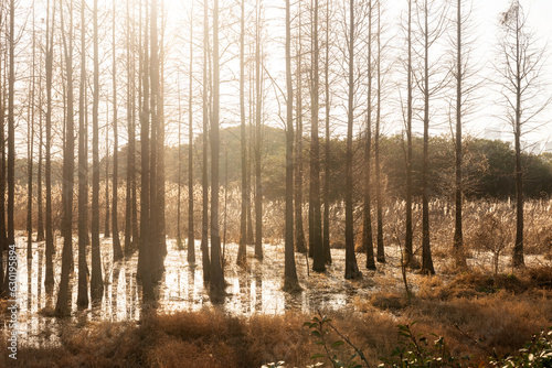 Obraz premium Dead trees reflected in swamp water