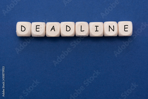 © Inga, Obraz premium Deadline word on wood blocks over blue background with copy space.