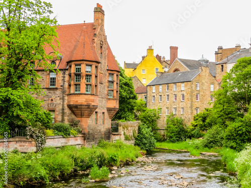 Naklejka premium Dean Village, medieval village in Edinburgh city and tourist attraction. Edinburgh, Scotland, UK