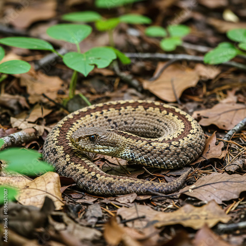 Obraz premium Death Adder Masterpiece: Photorealistic Camouflage in Leaf Litter, Forest Ambush.