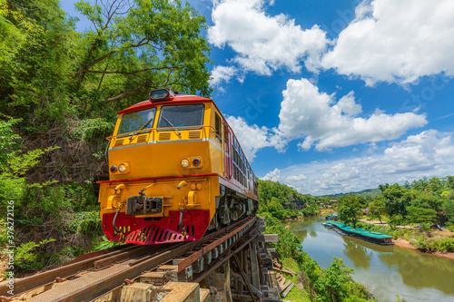 Naklejka premium Death Railway with train Famous place in Kanchanaburi Thailand