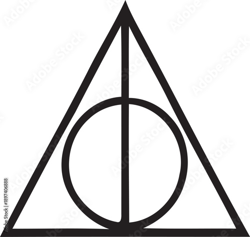 Fototapeta premium Deathly Hallows Symbol – Black Geometric Vector of Triangle, Circle, and Line...