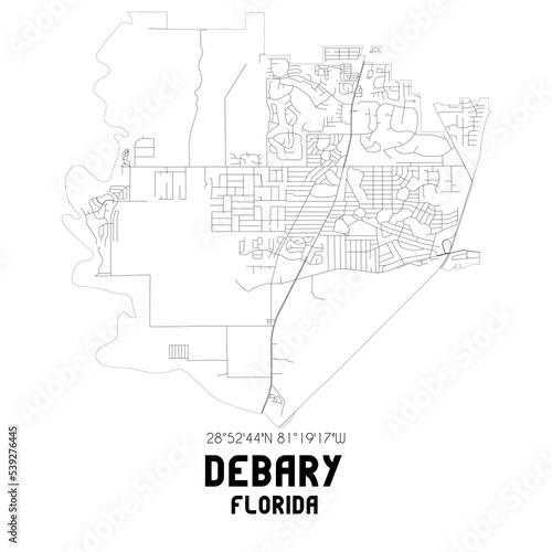 Fototapeta premium Debary Florida. US street map with black and white lines.