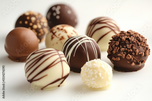 © Jana, Fototapeta premium Decadent assortment of gourmet chocolate truffles arranged artfully on a light surface