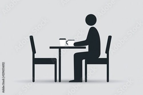 Fototapeta premium Decaf coffee. Minimalist silhouette of a person sitting at a table with a cup.