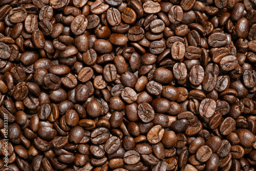 Fototapeta premium Decaffeinated coffee beans roasted close up top view