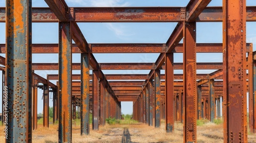 Obraz premium Decay of Industry, weathered metal frames, remnants of a bygone era, muted...