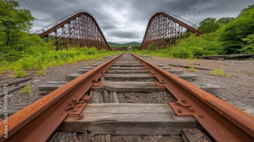 © Emqan, Obraz premium Decayed amusement park overtaken by nature