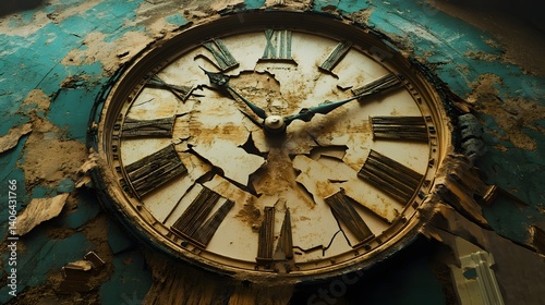 © PANGERANDESIGN, Obraz premium Decayed clock face in a crumbling building