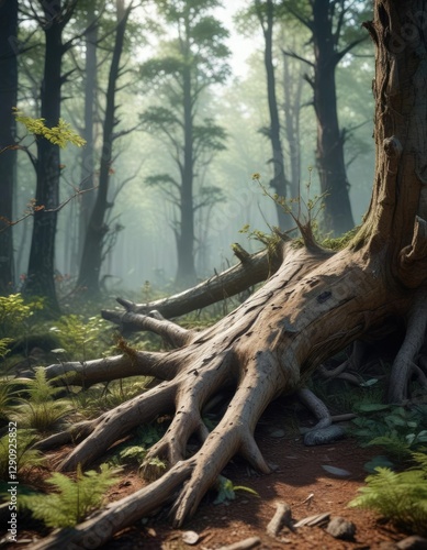 © Sayfar, Fototapeta premium Decaying tree trunks and branches on the forest floor, fallen trees, natural decay