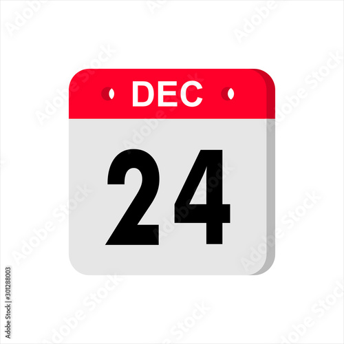 Fototapeta premium December 24 - Calendar Icon. Calendar Icon with shadow. Flat style. Date, day...