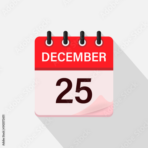 Fototapeta premium December 25, Calendar icon with shadow. Day, month. Flat vector illustration.