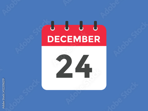 Fototapeta premium december 24 calendar reminder. 24th december daily calendar icon template....