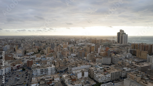 © Hussein Eddeb, Fototapeta premium December 30, 2021: Capital of Libya, Tripoli seafront skyline view.