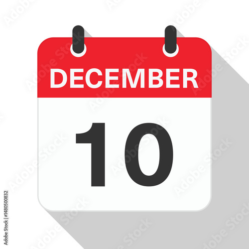 © TUGUDESIGN, Fototapeta premium December 10 Daily Calendar. Red Theme on White Background.