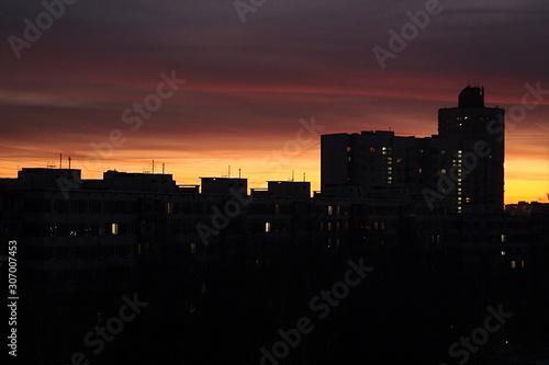 © EvgenyBelenkov, Fototapeta premium December dawn in a residential area of Moscow
