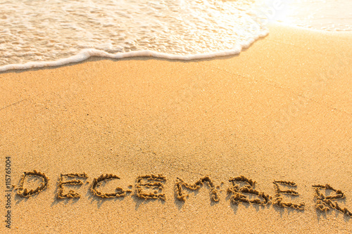 Fototapeta premium December - drawn by hand on a golden sandy sea beach.