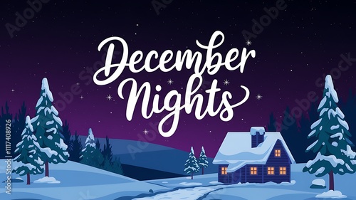 © Luthfi, Naklejka premium December Nights Snowy Cabin Winter Wonderland Scene