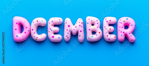 Fototapeta premium December Sweet Treat Pink Iced Cookies with Colorful Sprinkles on Vibrant...
