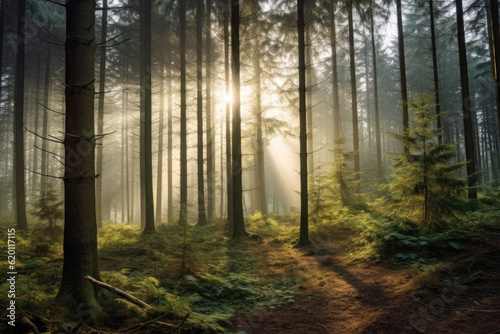 Obraz premium Deciduous forest in the soft morning light. Generative AI.
