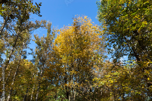 Fototapeta premium deciduous trees during leaf fall in autumn