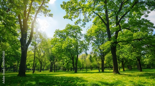Fototapeta premium deciduous trees in the park on a sunny day trees growing in the park in spring : Generative AI