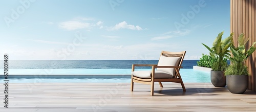 Fototapeta premium Deck with sea view in modern beach house or luxury villa Copy space image Place for adding text or design