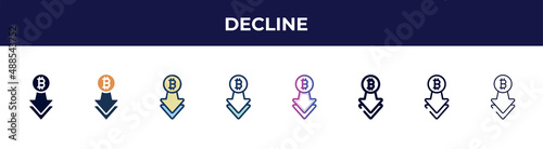 Fototapeta premium decline icon in 8 styles. line, filled, glyph, thin outline, colorful, stroke...